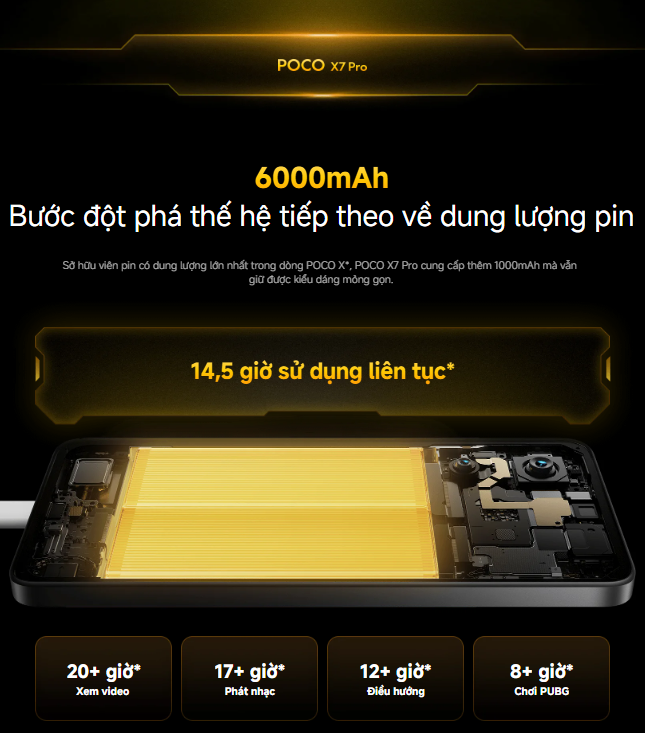 Viên pin Si/C 6000mAh cho thời gian sử dụng cực dài, thoải mái dùng cả ngày dài cho công việc lẫn giải trí.