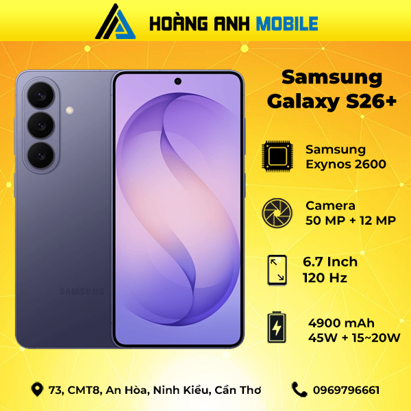 Samsung Galaxy S26+ là một trong những flagship mới của Samsung, mang đến sự kết hợp hoàn hảo giữa thiết kế cao cấp, hiệu năng mạnh mẽ và hệ thống camera chất lượng cao. Với màn hình Dynamic AMOLED 2X, chip xử lý thế hệ mới cùng thời lượng pin bền bỉ, Galaxy S26+ hứa hẹn mang lại trải nghiệm sử dụng mượt mà cho cả công việc lẫn giải trí.