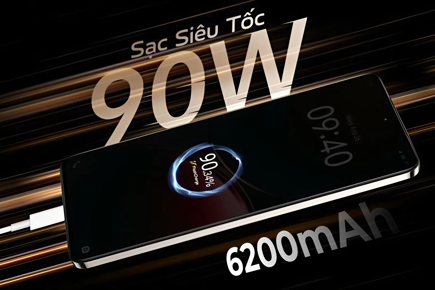 Sạc nhanh 90W – nạp đầy pin chỉ trong khoảng 35–40 phút
