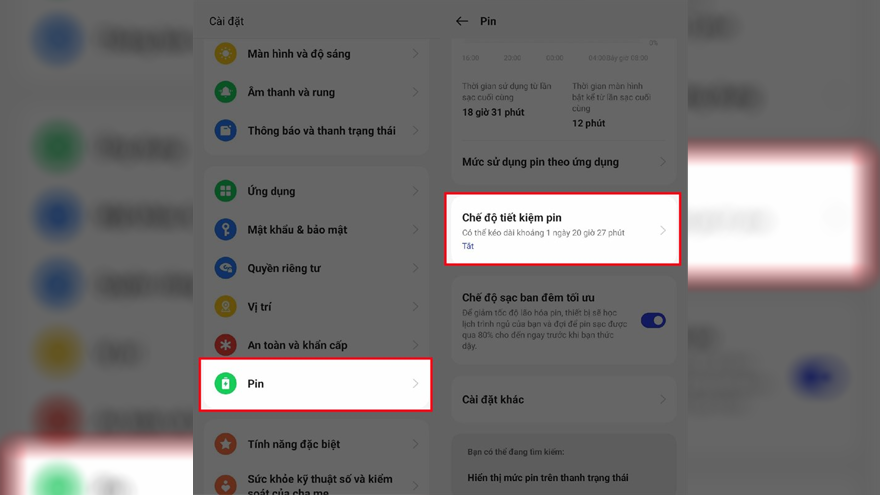Bước 1: Truy cập vào Cài đặt. Sau đó tìm đến mục Pin, Tiết kiệm pin, nhấn vào đó.