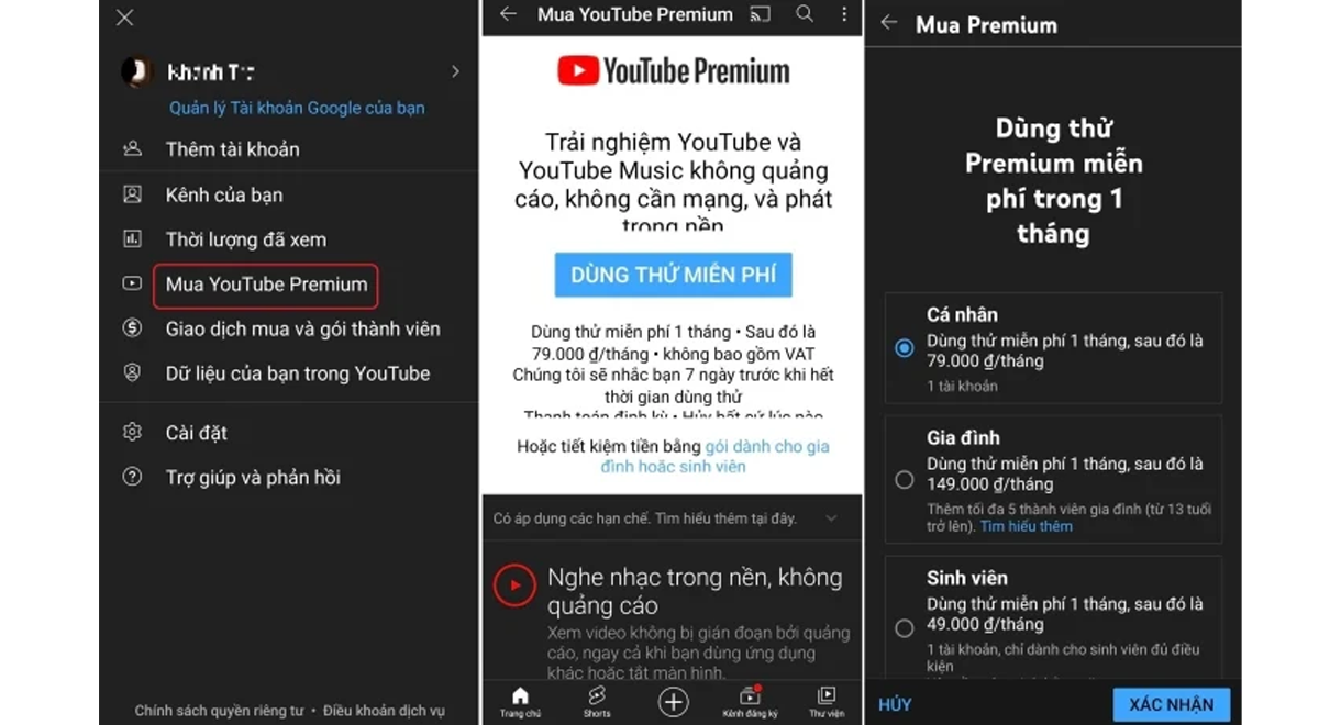 Để đăng ký YouTube Premium, bạn cần thực hiện các bước dưới đây: