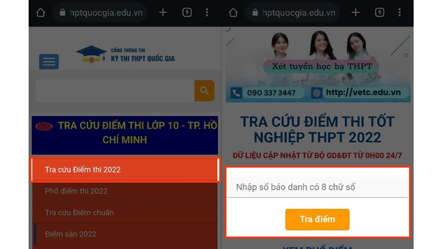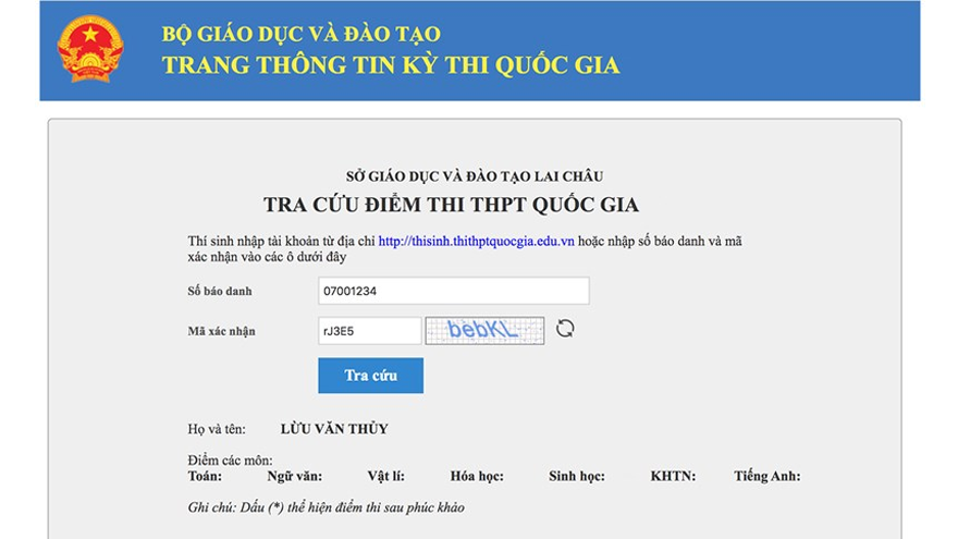 Tra cứu điểm thi tại trang THPT Quốc gia