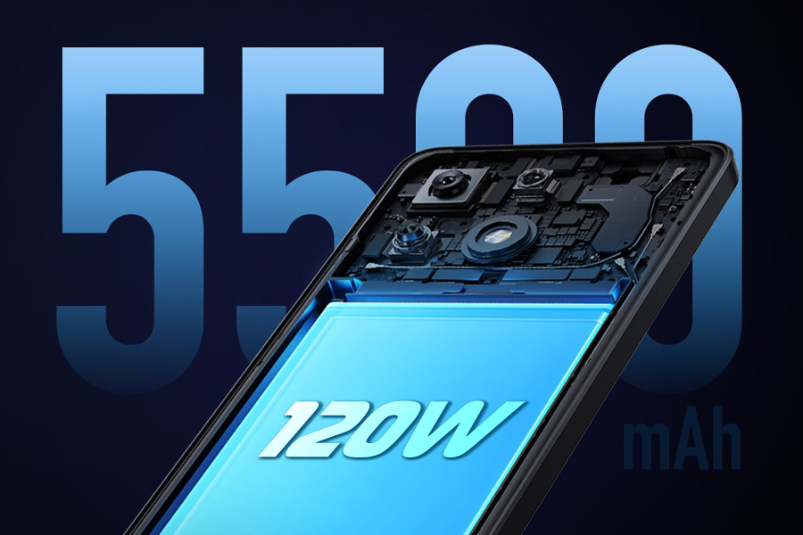 Pin lớn 5500mAh, sạc nhanh 120W – Trọn ngày chỉ với vài phút sạc