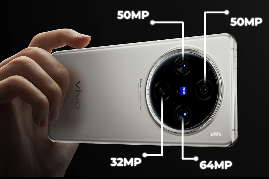 Điểm nhấn của vivo X100s 5G nằm ở hệ thống camera sau 3 ống kính kết hợp cùng ZEISS Optics và công nghệ phủ lớp Zeiss T* giúp giảm lóe sáng và sai lệch màu sắc: