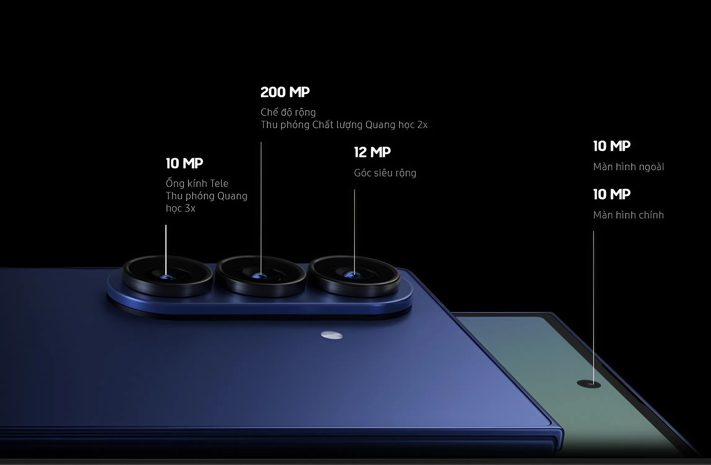 Góc siêu rộng 12MP | Tele 10MP zoom quang 3x, zoom số 30x