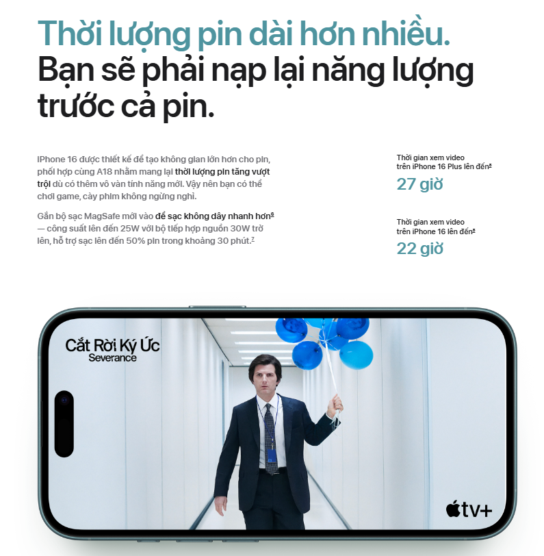 Dung lượng pin 3561 mAh – Đáp ứng cả ngày sử dụng với tối ưu hiệu suất nhờ chip A18