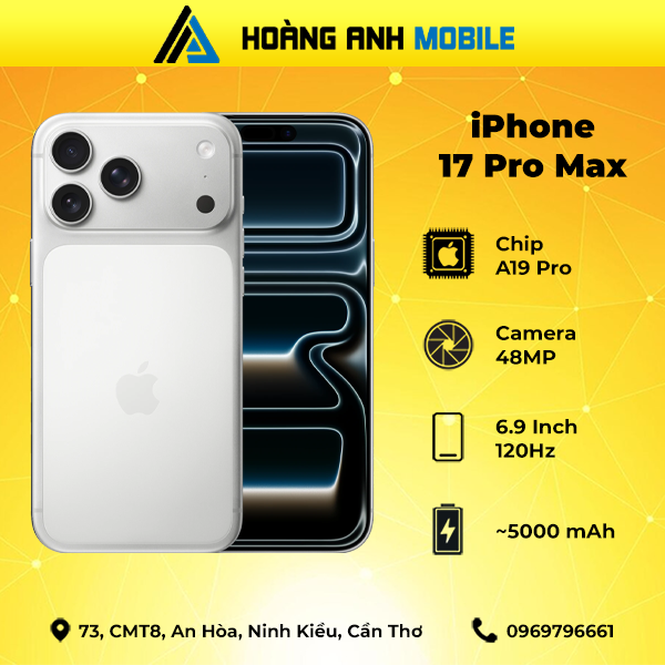 iPhone 17 Pro Max hội tụ đầy đủ những nâng cấp đáng giá: màn hình lớn, camera zoom 8x, hiệu năng mạnh mẽ, pin bền bỉ và thiết kế tinh tế. Đây là lựa chọn lý tưởng cho những ai muốn sở hữu chiếc smartphone cao cấp nhất năm 2025.