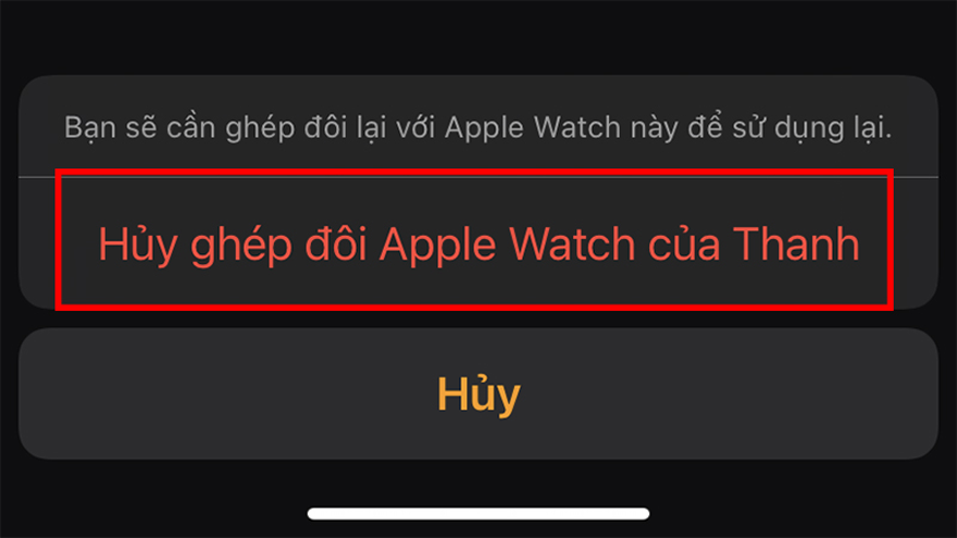 3. Ở cuối màn hình, chạm vào Hủy ghép nối Apple Watch.