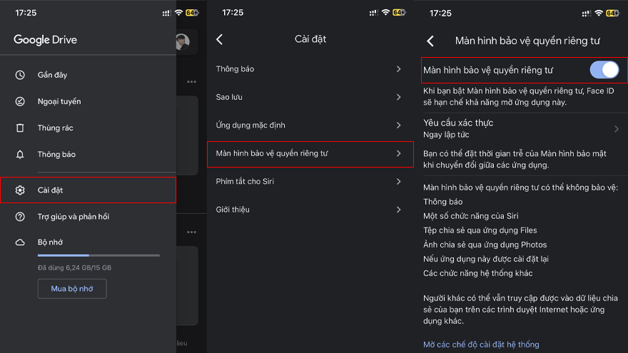 Trong ứng dụng Google Drive, nhấn vào biểu tượng ba dòng từ trên cùng bên trái > Cài đặt > Màn hình riêng tư và bật Màn hình riêng tư. Cuối cùng, xóa ảnh gốc khỏi ứng dụng Ảnh trên iOS của bạn.