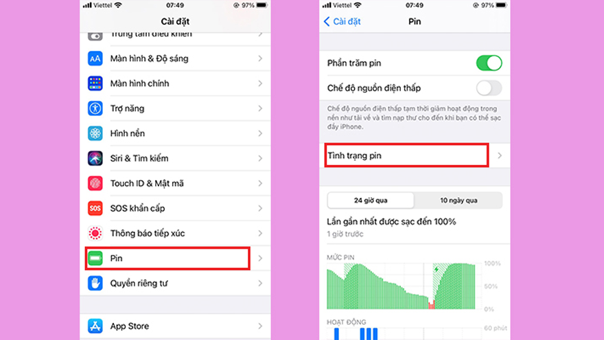 5. Kiểm tra Pin và sạc