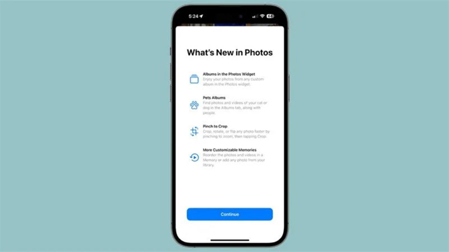 Màn hình giới thiệu mới trong Photos khi bạn mở ứng dụng Photos lần đầu tiên, và màn hình này sẽ thông báo cho bạn biết về những tính năng mới.