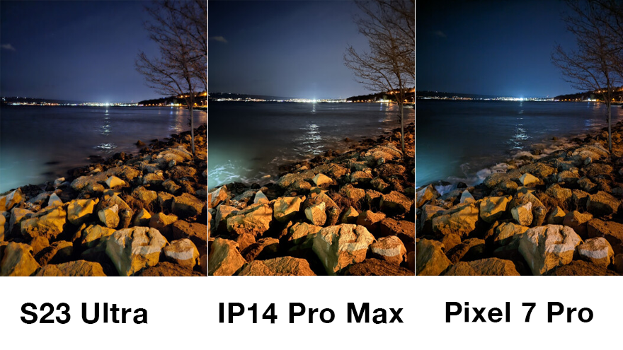 Cả ba điện thoại đều nhận biết khi trời tối và sẽ tự động phơi sáng lâu hơn để thu được nhiều ánh sáng hơn. Chúng tôi đã đo được rằng cả ba điện thoại thường mất khoảng từ 3 đến 4 giây để chụp ảnh ban đêm và chúng tôi không thấy sự khác biệt đáng kể về tốc độ vào ban đêm.
