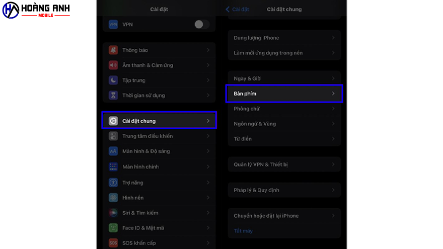 B1. Bạn vào ngay phần cài đặt bàn phím bằng cách truy cập Cài đặt > Cài đặt chung > Bàn phím.