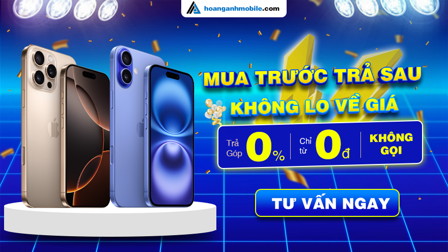 Đừng để tài chính cản bước bạn sở hữu chiếc điện thoại mơ ước. Hãy đến Hoàng Anh Mobile và trải nghiệm ngay chương trình trả góp 0% lãi suất, không cần trả trước, không gọi người thân, duyệt nhanh chỉ từ 15 phút.